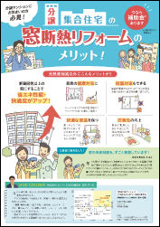 環境省の「先進的窓リノベ事業」を活用した窓の断熱リフォーム事例やメリットのチラシです。